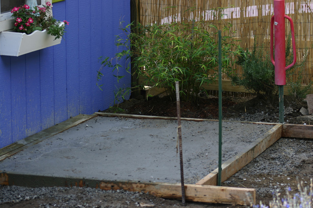 We’ve had two glorious rain days and every thing’s gotten a good soaking. We’ve been tidying up and have decided to go ahead and make a patio in back of the studio before finishing the bath house.