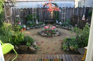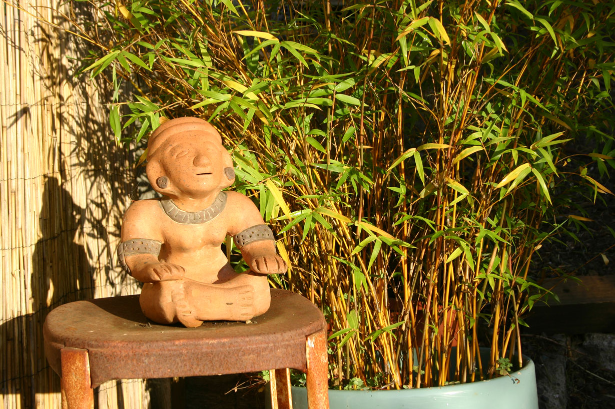Here’s our little Indian man next to the bamboo though he no longer sits there. We treat our yard very much like our interior. Things/plants get moved around as the mood strikes.