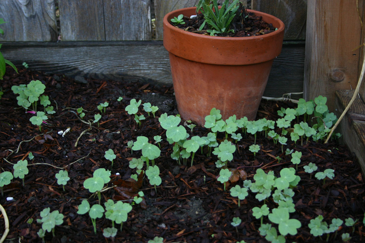 It’s warm and sunny today but we have had real autumnal days this month as well as a little rain here and there. Enough to make the nasturtiums come up like crazy everywhere. The Allysum and the poppies as well.