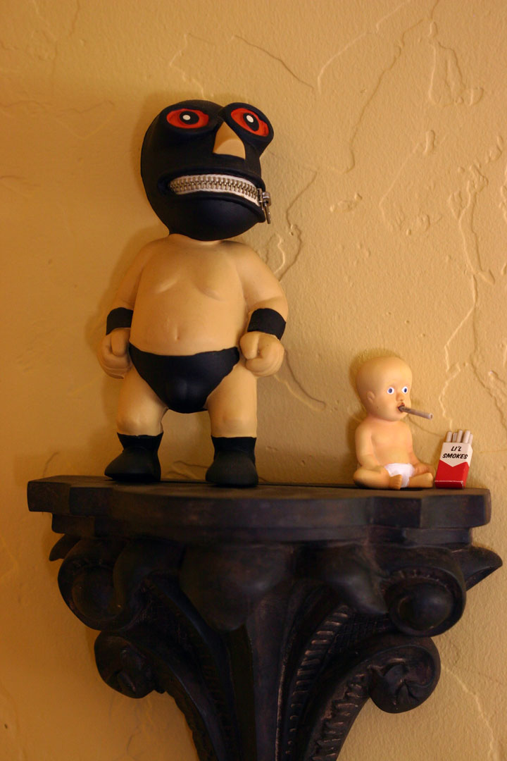 It was all over by the time we were done and she was sitting up looking not too perky and almost surprised at how much her throat hurt. The nurses were great about keeping the pain meds coming. That’s how we find out things about her we’d normally have to wait years to hear about. This time she told us how all her friends are always so weirded out when they come to our house because of all the weird art around. “Like, what’s up with that fucking monkey with the watermelon on her head and her nipples showing?”