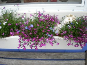 The fence line is blooming with these sweet little lobelia and johnny’s and poppies.