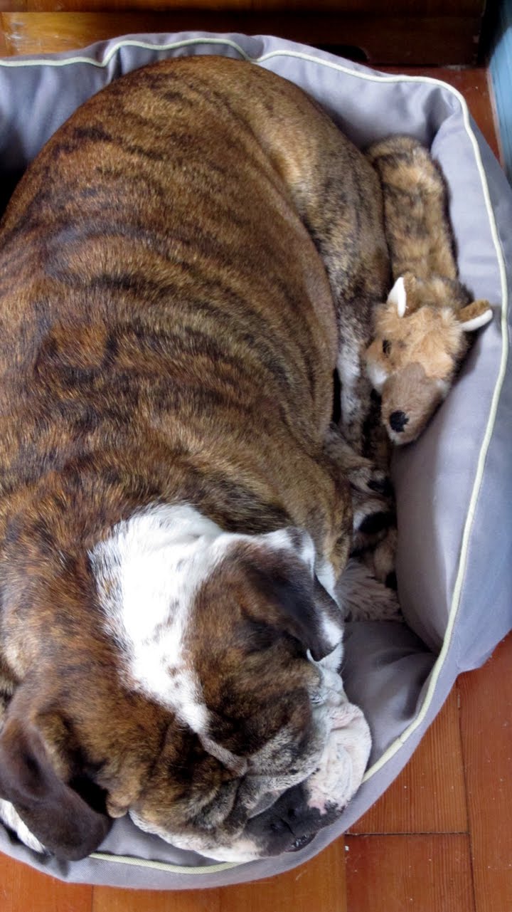 this is lu in a rare vertical moment. she’s been in her new bed most of the day snuggled up with her new toy fox
