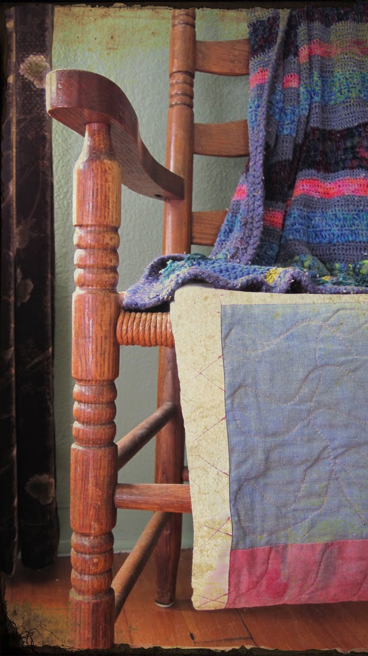It's a beautiful chair, a gift from Scott's Dad to his Mom and the blankets I made are well loved.