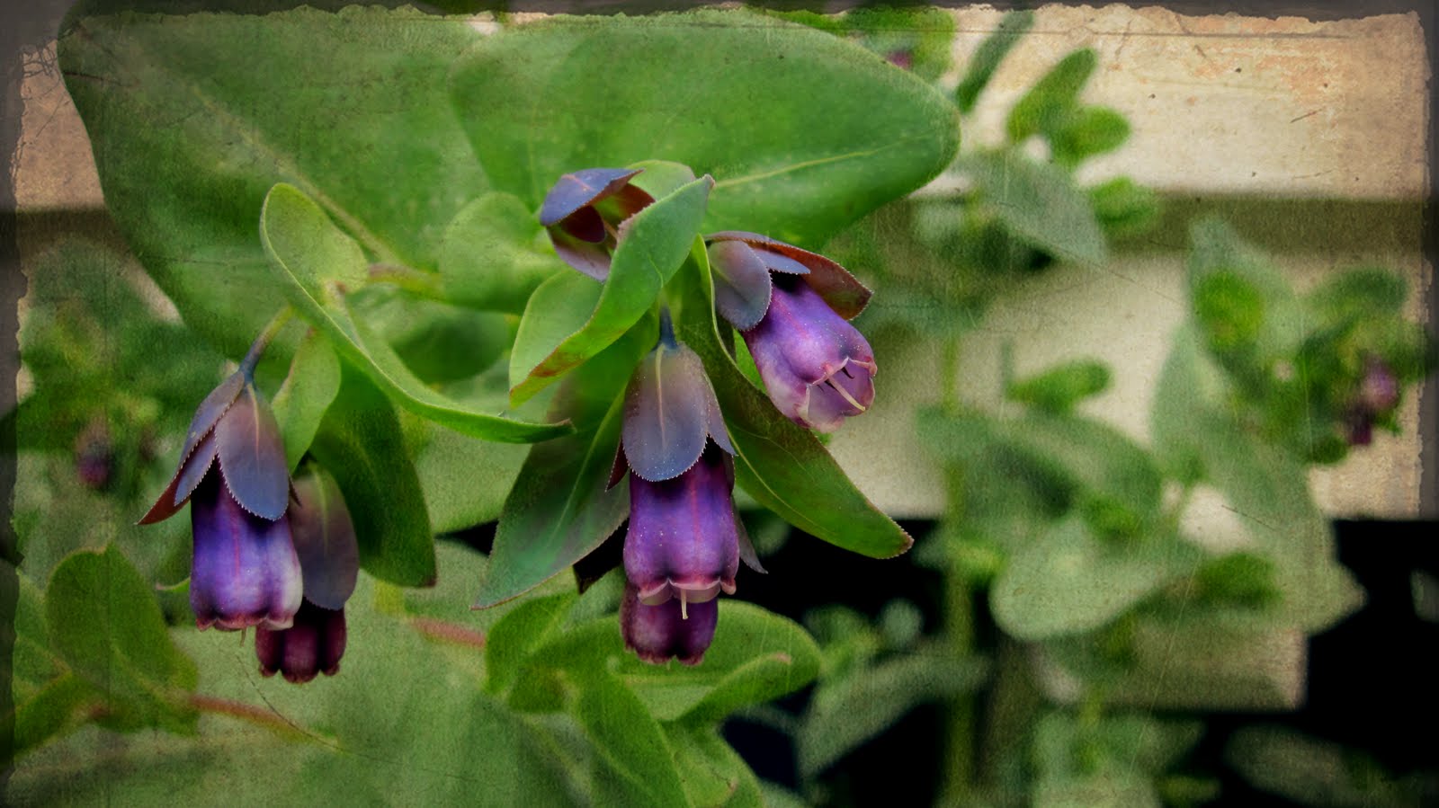 The Cerinthe blooming in the front window! I’m very happy to see her there in between our two Iceberg Roses with Allysum and Jupiter’s Beard and Tulips and Daffodils. It’s a beautiful sight to come home to.