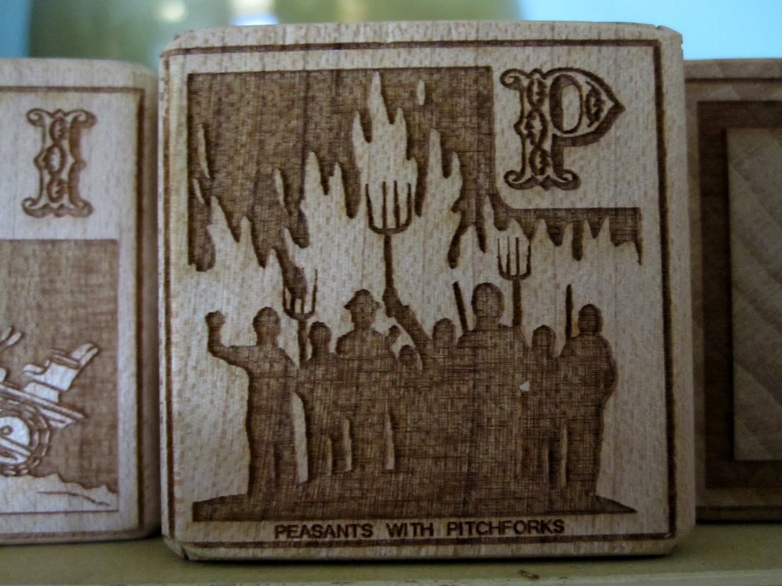 Peasants with pitchforks, one of five beautiful blocks from a sweet friend.