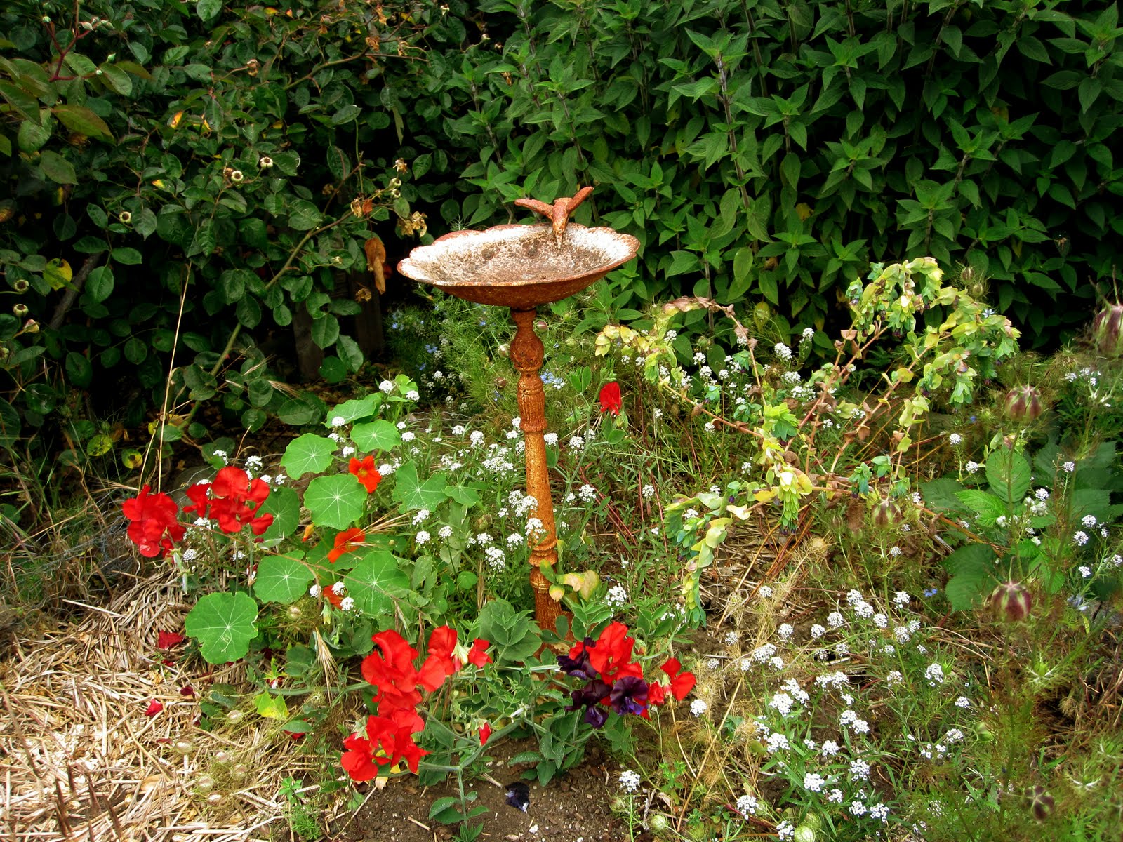 The bird bath bed is pretty sorry looking except for the sweet peas. The gophers loved the lettuce but very kindly left the sweet peas and the cerinthe which looks raggedy just now but will soon drop it’s seeds for next year.