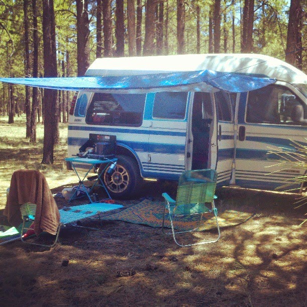 It has changed a little bit each day as I move things around for sun or shade but this morning I finally figured out my awning situation and since it involves being tied to trees, it’s not going anywhere until I absolutely have to take it down. It’s bitchin. I am now a feral beast.