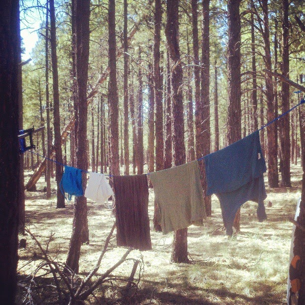 It has changed a little bit each day as I move things around for sun or shade but this morning I finally figured out my awning situation and since it involves being tied to trees, it’s not going anywhere until I absolutely have to take it down. It’s bitchin. I am now a feral beast.